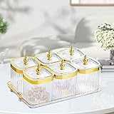 【Portable】: Candy nuts dish with lid, silicone loop can effectively seal the food or seasoning inside the container, dustproof, with stand, easy to move. 【Multi Grids】: Multiple compartments dried fruit tray, can be placed individually to avoid mixing and keep the table clean and tidy. 【Dried Fruit Tray】: Dried fruit snack serving plate is made of PP material, sturdy structure and . 【Multifunctional】: Divided serving dishes can be used to store nuts, dried fruits, snacks, fruits, appetizers, candies, etc. and can also be used as a condiment box. 【Widely Used】: Food storage container is suitable for home, kitchen, dining room, restaurant, party, living room, office and other occasions.