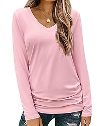 Fabric: This V-neck long sleeve top is made of 95% Polyester 5% Spandex, breathable, casual loose fit, soft and stretchy, lightweight, comfort to wear underneath Features: Basic T-shirt, v neck, long sleeves, soft fabric, solid color, loose fit, casual style, suitable for all occasions Matching: This women's casual long sleeve tee shirt is easy to match with jeans, shorts, sweatpants, leggings. It can also be worn as a base layer, with a casual coat or jacket, or layered with a sweater. Create a chic and stylish everyday look Occasion: Casual t shirt for home, leisure, travel, running, office, vacation, sports, fitness, yoga, going out. Basic fall T-shirt, suitable for all seasons Note: Machine/hand washable, not bleachable. Please read the size chart in the product description page carefully before ordering, not the Amazon size chart.Please size up if you want a oversized look