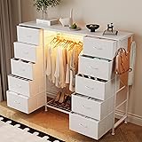 - LUMTOK 10 Drawers Dresser for Bedroom, White Drawer Dressers with LED Lights, Charging Station and Hanging Racks for Bedroom Living Room, Entryway, Closets