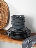 Famiware Moonlight Plates and Bowls Sets, 18 Pieces Stoneware Dinnerware Sets with Linen Finish, Handmade Dishware set for 6, Microwave and Dishwasher Safe, Scratch Resistant Tableware, Dark Blue
