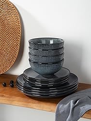 Moonlight Dinnerware Sets for 6: This stoneware dinnerware set includes 6*10.5 inch dinner plates, 6*8 inch salad plates, 6*20oz cereal bowls. The bowls and plates set can serve various dishes, making it great for family gatherings. It is also an addition to a kitchen collection Linen Finish Design: The reactive glaze and artisanal craftsmanship enhance the stoneware's luster, while the linen finish design makes the dinnerware set special. The slightly uneven design of the surface adds a unique touch to the bowls and plates. This timeless dinner set is a must-have for your collection Natural Material: Our plate and bowl sets are made from natural stoneware, and the glazes are fired at 2200°F for 13 hours. The glazes are food-grade, 100% lead-free, and cadmium-free, so you don't have to worry about health issues Dishwasher and Microwave Safe: Our dinnerware has been tested for safety in the microwave and dishwasher by internationally accredited laboratories. Each plate and bowl is 100% dishwasher safe and microwave safe Sturdy and Stackable: Our dinnerware set is stackable, saving enough space for other dining sets in the kitchen cabinet. The inner side is glazed, so it won't cause scratches when stacked. Nice Present: The stoneware dish set with its unique design can be an attractive present for your friends and family on a housewarming. The dinnerware set can also be used at home, in the office, and at restaurants Famiware’s Promise: If your items arrive damaged, incomplete, or in the wrong color, we offer complimentary replacements. Reach out to us on Amazon at any time; our dedicated team is on standby to make your dining experience healthy and enjoyable Thanks for choosing Famiware!Famiware is dedicated to creating healthy and safe dinnerware that turns every time you cook and eat into a warm experience