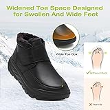 DETACHABLE TPU SUPPORT: Diabetic patients often face specific foot conditions and complications that require extra attention and care. The detachable TPU supports in these boots enable you to customize the level of support needed for your feet. Whether you require additional arch support, cushioning, or a more neutral alignment, you have the flexibility to adjust the TPU supports accordingly HOOK AND LOOP: These boots come equipped with a convenient hook and loop feature. This adaptable design not only makes them suitable for both indoor and outdoor wear but also enables easy width adjustments, providing the extra space necessary for swollen feet. Whether on vacation or at the park, these boots are designed to support you during prolonged periods of walking or standing WINTER ANKLE BOOTS: Our boots made with waterproof genuine leather, they're suitable for wet and snowy climates, ensuring your feet stay dry and comfortable. These versatile boots are suitable for various occasions - be it your everyday work, casual walks, parties, and walking your dog WIDE TOE BOX: The spacious design allows your toes to naturally spread out, which can help alleviate pressure on bunions and hammertoes, is also a great choice for those with swollen feet. It provides ample room for the feet to expand and accommodates any swelling, ensuring a comfortable fit throughout the day FOOT PAIN RELIEF: Orthopedic boots provide relief from foot pain. They're especially beneficial for conditions such as plantar fasciitis, arthritis, bunions, swollen, heel and ankle pain. The boots are designed with cushioning and fabric in the interior, which helps eliminate irritation and offers added protection for sensitive feet