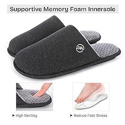 EverFoams Men's Cotton Knit Slippers Lightweight Memory Foam Indoor House Shoes with Anti-Skid Sole