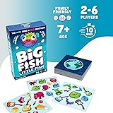 FAST-PACED GAMEPLAY: Engage in a thrilling game of quick reactions, where players flip cards and race to shout out the correct answer, making each round exciting and unpredictable. FAMILY FRIENDLY: Designed for 2-6 players and suitable for children aged 5 and up, making it an ideal choice for family game nights and gatherings. EDUCATIONAL BENEFITS: Enhances observation skills and fast thinking, providing a fun learning experience while promoting quick decision-making. REPLAYABILITY: With 6 different rules that can change with each card played, Big Fish Little Fish offers endless variability, ensuring no two games are the same. RICH VISUAL DESIGN: Features 52 picture cards with 130 vibrant illustrations of objects in various sizes and colors, ensuring a visually engaging experience for all ages.