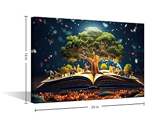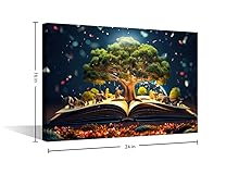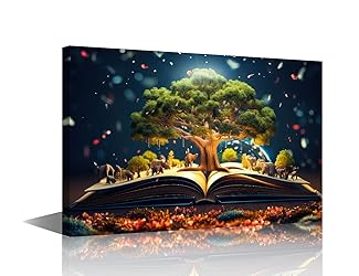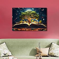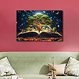 TUMOVO 1 Panels Modern Wall Art World Philosophy Day Concept with an Old Book and a Tree of Knowledge Pictures Print on Canvas for Home Office Wall Decorations, Ready to Hang, 24" Wx16 H