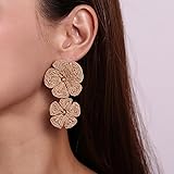 RUOFFETA Raffia Flower Earrings, Raffia Straw Wrapped Flower Drop Dangle Earrings Summer Tropical Beach Jewelry