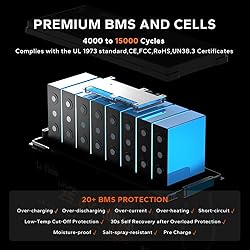 Bluetooth 5.0: Auto-connects, monitors real-time, controls discharge. Tracks battery status easy. Keeps your adventures powered smooth—no interruptions. Low-Temperature Protection: Automatically stops discharging below -4°F (-20°C) and stops charging below 32°F (0°C), ensuring safety in ice fishing and cold conditions. Advanced Safety & Longevity: Built-in 100A BMS offers over 20 protections. Combined with 4,000+ cycles at 100% DOD,6000 cycles at a 80% DOD, 15000 cycles at a 60% DOD, it delivers reliable power and a decade of lifetime. Compact & Lightweight: Measures 8.2x21x8.5 inches. Saves space vs two 12V batteries. Weighs only 45.85 lbs—1/3 the weight of lead-acid for easy installation. Supports 4P2S for 10.24kWh capacity. Wide Applications: Perfect for 24v trolling motors(70-100lbs thrust), marine use, RVs, home storage, and off-grid solar systems. Not for engine starting or high-surge devices.