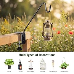 - Introducing the Kingsyard Heavy Duty Deck Hook, your perfect outdoor hanging solution. This 10-inch metal hook is designed for versatility, allowing you to hang bird feeders, planters, suet baskets, lanterns, and wind chimes effortlessly. With a user-friendly hand knob, it clamps securely to railings up to 2.2 inches thick, supporting up to 25 pounds. Its rust-resistant finish ensures durability through all weather conditions, from scorching sun to heavy snow. Enjoy hassle-free installation with no tools required-just tighten or loosen the knob to fit different railing sizes. Ideal for outdoor enthusiasts, the Kingsyard Deck Hook also makes a thoughtful gift