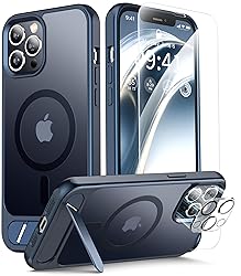 [Hands-free Viewings When Hassle-free Magnetic Charging] Uniquely in the industry, RFUNGUANGO has the most flush kickstand ever with a case. It is out of the way whether or not open or closed, so the magnetic charging is uninterrupted. You can get into hands-free Facetime or watch content either 55° vertically or 65° horizontally, especially while magnetic charging. Don’t freak over the power off whatever you are doing. A huge leap in kickstand brings you peace of mind. [NEW MAGNETIC EXPERIENCE]: Enjoy fast and secure magnetic stability with the RFUNGUANGO Magnetic Stand Case. 60% stronger than the official magnetism of the iPhone 12 ProMax case. With a powerful 19N magnet, your phone effortlessly attaches to any magnetic accessory. No more worrying about your wireless charger not charging quickly or your phone slipping out of the car mount while driving on a bumpy road. [Feeling the differences in Touch and Visual]RFUNGUANGO takes a huge leap forward, bringing a unique experience to your hands & eyes. The case is crafted with cutting-edge TPE&TPU, incorporating a new velvety-like coating. It feels comfortable to touch and luxurious to hold, unlike those cheap cases with a sticky plastic feel. The translucent back reveals and even enhances the original beauty of your phone. It is aesthetically pleasing at all times, unlike a clear case that discolors over time. [FLEXIBLE STAND FOR VARIOUS VIEWING PERSPECTIVES]: Withstands more than 10,000 rigorous folding tests. Durable. Whether you're watching a TV program in landscape orientation or making a video call in portrait, the ingenious kickstand lets you do it all with the iPhone 12 Professional Max Phone Case. [Indestructible Protection] The shockproof iPhone 12 Pro Max case is equipped with 4 unique anti-collision structural angles, which effectively reduce the impact of falling, improve the protection performance by 200%, and protect your phone from expensive repairs.