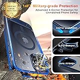 RFUNGUANGO for iPhone 12 Pro Max Magnetic Seamless Stand Case with Screen Protector*2 Lens Protector*2, Compatible with MagSafe, Military Grade Drop Protection, Adjustable Kickstand, Slim MatteBlue