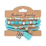 Unique Handmade Bohemian Bracelet Set: Featuring a mix of gold beads, tassel pendants, and natural stones, this versatile beaded bracelet set offers a perfect blend of boho-chic style and elegance. Each bracelet is uniquely designed, handmade, and can be worn alone or stacked to create your own personalized look Materials for Durability: Crafted from premium alloy, natural stones, and crystal, these bracelets are built to last. The sturdy, handmade construction and durable thread ensure long-lasting wear Adjustable And Comfortable Fit: The bracelet set is designed with elastic cords, making them fully adjustable to fit most wrist sizes comfortably. No need to worry about sizing—these bracelets provide a perfect fit for most women, ensuring they stay secure and comfortable all day Perfect Gift for Loved Ones: These elegant and trendy bracelets make thoughtful gifts for your mom, girlfriend, sister, or friends. Ideal for any occasion, including Christmas, birthdays, Valentine's Day, anniversaries, or just because, these bracelets are a beautiful way to show someone special how much you care Versatile Bohemian Style: With a multi-layered design featuring white and blue tones, these bracelets add a distinctive boho vibe to any outfit. Perfect for casual wear or special occasions, the tassel and bead accents create a unique, eye-catching look that will make you stand out from the crowd