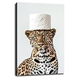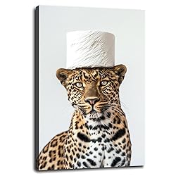 Generic Animal Cool Funny Wall Art A Real Leopard With A Roll Of Paper On Head Canvas Prints Poster For Home Office Bathroom Living room Bedroom Decorations With Framed 18""x12""