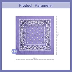 - LePvo 24 Pcs Bandanas Bulk 22 x 22 Inch Paisley Bandanas Multi Purpose Outdoor Scarf Headband Handkerchief Head Wrap Colored Bandana Face Cover for Men Women Pet (Purple)