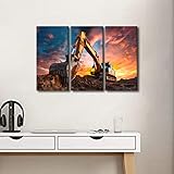 Office Canvas Wall Art Decor Excavator Construction Site Picture Printing 3 Panel Industry Machinery Poster Prints for Men Living Room Bedroom Decor Stretched and Framed Ready to Hang 36x24 in