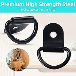 What You Get -- It Includes 20pcs D-Ring tie downs utility trailer accessories. Load Capacity: 75kg/150lbs. Sufficient quantities to meet your needs. Premium Material -- Tie-down rings are made of high quality metal material, strong and durable. The surface is powder coated to prevent corrosion and rusting. Product Size -- The trailer tie downs Ring Inner Diameter: 20mm/ 0.79inch; Total Length: 36mm/ 1.4inch; Installation Hole Diameter: 4.5mm/ 0.18inch. Easy to Install -- the truck bed tie down anchors provides a sturdy base. Simply insert the screw or bolt through the 1/4" bolt hole on the mounting bracket, and then fix it to any wood or metal surface. Come with mounting brackets and bolts Widely Used -- this surface-mounted trailer tie down anchor adds a convenient anchor point to the rope, bungee cord or belt, which is very suitable for the cargo management of Trailers, Trucks, Vans, flatbed trailers, utility trucks, Pickup, RV Campers, Boats, Kayaks, Motorcycles, ATVs