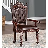 INCLUDES: Two (2) Dining Arm Chairs MATERIALS: Faux Leather, Solid Wood, Wood Veneer, MDF Intricate molding and carving details add incredible character Regal in appearance to level up your dining area or other seating arrangements This set brings formal and regal vibes to impress guests