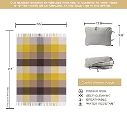 Temminc Pure Wool Plaid Throw Blanket - Warm Throw for Couch, Travel Outdoor Camping Blankets, Portable Lightweight Travel Blanket Airplane Compact with Bag/Oatmeal Oversized Check Wool Throw