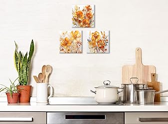 【Burnt Orange Flower Wall Art Size】12 x 12 inch(30 cm x 30 cm), total 3 pieces. Nature orange flowers wall art prints fall floral paintings. Watercolor poppy flowers pictures, perfect HD vibrant orange floral wall art well match in batnroom bedroom wall decor. Each burnt orange wall art is stretched on wood frames, ready to hang. 【Nature Floral Wall Art Unique Gift】Orange wildflower wall art minimalist floral canvas prints painting is a great gift ideas for family members, friends, lover, business partners, neighbors, workmates on Christmas, New Year, Halloween, Thanksgiving, birthday, housewarming, wedding, Memorial Day, family gathering, party, Father's day, Mother's day etc. 【Flower Pictures Wall Decor for Home】Nature poppy wall art vintage fall floral wall decor makes it suitable to hang in living room, foyer, apartment, villa, kitchen, office, couple bedroom, guest room, bathroom, hallway, stairs, lounge, dorm, hotel, restaurant, coffee, loft, gym, bar, etc. Impressive view and brings modern nature flowers scene to your home decor. 【Wildflower Pictures Premium Canvas Prints Art】We use high-definition giclee printing technology, for bring bright&rich color and HD pixels, prints on high gloss, waterproof, UV resistant canvas with vivid color and great details. No needed additional frame, easy for hang. 【Please Note】The display image of this flowers painting wall art are only for illustration purpose, color may vary due to different brand of monitor, light, screen setting.If there is any issue, please don't hesitate to mail us. We always committed best buying experience for our customers.