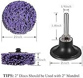 【Quality Materials】 The purple diamond material of strip disc is a high-strength, high-wearing honeycomb soft abrasive tool formed by with premium purple nylon webbing and grains. Using fiber mesh as a carrier, using resin elastomer, The sharp abrasive adheres firmly to the fiber web. 【What You Get】100 pcs quick change disc, 2-inch in diameter and 0.6 inches in thickness, 1 pc quick change disc pad holder. Rotating speed 22000 (R.P.M). 【Features】Our strip disc does not damage the surface of the object, the grinding force is uniform, the processing effect is uniform and wear-resistant, the water resistance is strong, the plasticity is strong, the softness is good, it is suitable for various shapes to be peeled off by the grinding body, the grinding sound is small, the dust is small. 【Wide Applications】The metal stripping disc are perfect for the removal of paint, cleaning weld lines and splatter, removing scale and oxidation and of course, surface prep in auto body. 【Fit For Most Grinders】The 2-inch abrasive discs are suitable for power drilling, mold/air grinding machines, and other rotating tools. Please confirm your power tool size before purchasing.