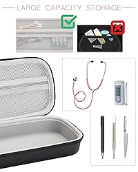 【LARGE SPACE】STUKCAZE stethoscope case bottom size is 10.4 x 4.2 IN, fit for most type of stethoscopes such as 3M Littmann Classic III, Lightweight II S.E, MDF Acoustica Stethoscope. 【DETAIL DESIGN】Closed mesh pocket storage accessories avoid spill out when moving, smooth zipper is easy to close and open case. 【PORTABLE CARRYING】The handle on stethoscope case conforms to the mechanical design of the human body, convenient for take outdoor or use at home, you can put it on table, shell and hang on the wall. 【WATER RESISTANT & DUSTPROOF】PU skin case is waterproof and easy to clean, just wipe with paper when it stained with water or stains, and you can write or label as a note on case, such as name and contents. 【PROTECT EQUIPMENT】Hard EVA case is supportive, protect your equipment when the casing falls, something heavy pressures on the case or loaded into a box or backpack.