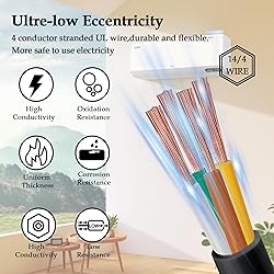 [High-Purity Pure Copper Conductors]: Constructed with high-quality pure copper conductors for superior conductivity and lower resistance compared to copper-clad aluminum wire. Helps reduce power loss and heat buildup for reliable, long-term performance. [300V Voltage Rating for HVAC Applications]: Rated up to 300 volts, designed specifically for Mini Split air conditioners, heat pumps, and other HVAC systems. Ideal for indoor fixed installations with consistent and dependable power delivery. [14/4 Configuration for Easy Installation]: 14 AWG, 4-conductor design supports both power and control signal connections between indoor and outdoor units. Simplifies wiring tasks and improves installation efficiency for professionals and experienced DIY users. [Durable and Protective Insulation Jacket]: Features a tough, abrasion-resistant insulation jacket that withstands bending, pulling, and everyday installation wear, helping extend service life and reduce maintenance needs. [Application] - Our 4 lines of 14 Gauge wire Suitable for Mini Split Air Conditioner and Heat Pump Systems.