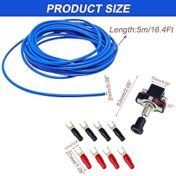 Package Content: 1Pc 18 guage wire 16.4Ft/5M, 5 pairs U shape terminals, 1Pc push-pull Switch High Conductivity: 18 awg single conductor wire uses high-precision tinned copper material. Compared with aluminum materials, it has lower resistance and higher conductivity Durable Material: The jacket/insulation materials are Polyvinyl chloride Pvc, which protects the wire against abrasion, resistant to sunlight and chemicals Application: 18 awg wire is widely used in various low voltage electronic wiring, it can be used for solar panels, marine wire, lamp wire, automotive wire, LED light wire, inverter wiring, etc. Best Service: If you have any questions about our electrical wire, please feel free to contact us at any time and we will solve it for you immediately