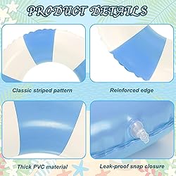 - Features & Benefits: Our pool floats are made of good quality PVC materials, and designed with classic blue and white stripes, look stylish and beautiful. Ideal for the swimming pool, beach, birthday party, party toys, water fun, performances props, summer gifts etc. Liven up your summer to add more fun. Specifications: Size:details as above Material: PVC Color: blue and white Package includes: 4 x Inflatable Pool Float