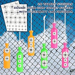 ▶ PRODUCT INFORMATION - This set of product includes six bottles, each with a diameter of 2.4 inches and a height of 8.8 inches. Additionally, each bottle comes with a 4 - foot long hanging rope, making it convenient for you to hang and set up targets ▶ HIGH VISIBILITY - These bottles are designed in three bright neon colors, providing excellent visibility for both short and long range shooting in indoor and outdoor environments. Whether you're engaging in precise close-quarters shooting or long-distance training, you'll have a great shooting experience ▶ LIGHTWEIGHT AND PORTABLE - The entire set of six exploding bottles weighs only 1.74 pounds, making it extremely lightweight. You can effortlessly carry them and place them anywhere, whether it's an outdoor training range or an indoor shooting facility. These bottles are ready for use anytime, anywhere ▶ CHALLENGING SHOOTING LIMITS - Each set comes with two target stickers to increase the difficulty of shooting. Push your shooting limits, improve your accuracy and reaction time, and enhance your shooting skills ▶ Comes with a multi-functional folding storage rack, suitable for both outdoor activities and indoor use