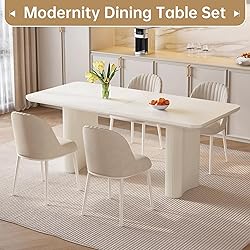 Spacious and Comfortable Dining Experience: The Miuuod Rectangle Dining Table is innovatively designed to cater to the modern home-owning family. With its large tabletop, it comfortably accommodates up to 4-8 diners, providing ample elbow room for each person. The white table top creates an inviting atmosphere, encouraging you to spend more time enjoying meals and conversations with your loved ones. Reliable Structure with Wave Legs: This dining table features sturdy wave legs, providing reliable structural support and ensuring durability for years to come. The unique design adds a touch of elegance to your dining room. Multifunctional Kitchen Table: Not only can this dining table be used as a kitchen table and dinner table, but it can also serve as a large table for your office or living room. Pair it with our Farmhouse Dining Bench (sold separately) to create the perfect farmhouse dining table set. Easy Assembly Process: The Miuuod Rectangle Dining Table is designed with your convenience in mind. It comes with all the necessary hardware and a comprehensive manual, ensuring a hassle-free assembly process. Now, you can assemble your new centerpiece for your dining room or living room without any tediousness or additional help, giving you more time to plan your first meal around it. Elegant Details: The Miuuod Rectangle Dining Table features elegant details that add a touch of sophistication to your space. From the clean lines to the smooth finish, every detail is carefully crafted to enhance the overall aesthetic appeal of your dining area.