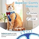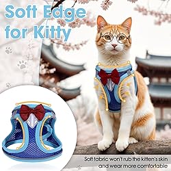 - Bright Reflective Strip:Our cat vest harness and leash with reflective strip makes cat visible in low light conditions and improves safety when walking at night. Definitely a reward for increased security Novel Design: Inspired by the famous Detective Conan, our harness for kitten is uniquely designed and full of props. We also equipped the cat with a pair of lensless glasses and a bow to make them look more cool, which is really interesting Easy to Wear: The step in cat vest harness has a buckle ,which can be worn quickly and safely. The adjustable belt allows you to quickly customize the vest for the small frame of the dog and cat, so that they will not slip easily Light and Breathable: The extra small cat harness is made of soft and light mesh material, which can protect your pet firmly and safely, and will not bring great pressure and burden to your pet.What’s more, this material is breathable, which can keep warm in winter and cool in summer.It is comfortable enough for your pet to play more freely and vividly Escape-proof Cat Harness: Our tiny kitten harness can wrap cats comfortably in 360 degrees. Suitable for daily walking, jogging, training, and any outdoor recreations. With NCMAMA escape-proof cat harness, it is easy to take the kitten to a strange place to travel, and no longer have to worry about the cat getting lost