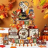 Maitys 21 Pcs Thanksgiving Tiered Tray Decor Set Fall Pumpkin Gnome Truck Scarecrow Wood Sign Rustic Farmhouse Decor Hello Fall Wood Bead Decorative Tabletop Sign for Autumn Thanksgiving Day(Cute)