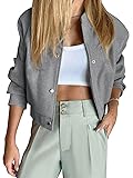 Tankaneo Womens Cropped Bomber Jacket Wool Blend Varsity Short Pea Coats Long Sleeve Button Down Winter Casual Outerwear