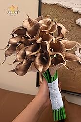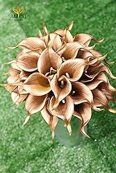Alifst 30Pack Real Touch PU Latex Artificial Calla Lily Flowers for Wedding Party and Home Decor-Gold