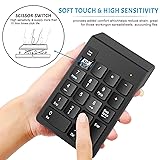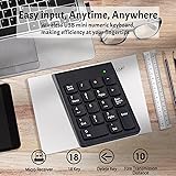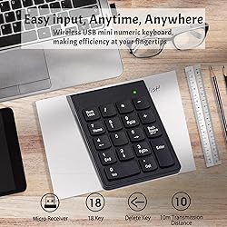 Ergonomic Design Number Keypad: Featuring a 15° ergonomic tilt, this numeric keypad provides comfort and helps reduce strain. With excellent spring action and comfortably sized keys, it offers quick response to enhance your work efficiency. Perfect for those frequently handling spreadsheets, accounting documents, or financial applications Smart Wireless Numpad Keyboard: Using advanced 2.4GHz wireless technology, this keyboard number pad for laptop is plug-and-play with no additional drivers needed. Simply insert the receiver into a USB port and add AAA batteries (not included) to start using immediately. The stable digital signal transmission works up to 33 feet Multi-functional 10 Key Wireless USB Number Pad: Beyond number functions, it features multiple shortcut keys to greatly boost your productivity. Suitable for various scenarios from accounting and financial work to data entry and education. Ideal for professionals and students. Also perfect for gamers needing extra keys for macros and digital artists/designers requiring shortcut support, offering versatility in any workspace Wide Compatibility Number Keyboard: Compatible with various devices including laptops, desktops, and tablets. Fully supports Windows 2000, XP, Vista or Windows 7/8/10/11 later, Chrome Os, Android, Linux, Paritally work with macOS with USB port (Numbers work fine but hotkeys not workable). An ideal wireless numeric keypad solution Anti-Slip Portable Design: Wireless numeric keypad dimensions 5.40 inches long, 3.4 inches wide, 0.79 inches high; weight 80g. Equipped with four anti-slip pads on the back to prevent sliding on your desk during use. This sturdy and portable keypad allows you to work efficiently anywhere. Note: The package includes a numeric keypad and a USB receiver, batteries are not included
