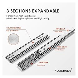 Because of the slides' full extension function, the drawer can be pulled out completely, which allows for the entire drawer's storage to be accessed easily. The slide has an outward thrust to make the drawer close slowly to prevent fingers from being pinched; When opened, the slide has a strong inward pull, and a handle is required to easily open the drawer and prevent the drawer from falling during movement Smooth and Quiet: These solid stainless steel beads in the ball positioning tank ensure a smooth and quiet performance. Any quality or installing problem please feel free to contact us,We will get back to you as soon as possible Drawer runners are suitable for kitchen cabinets, drawers, desks, furniture, office furniture, closets, kitchens, etc.