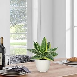 Realistic Artificial Snake Plant: Realistic artificial sansevieria plants are made of polyester material. Each fake Snake Plant with pot leaf is thick, upright, solid, has its own elegant arc, gives you a touch like a leathery. "Hollyone" brand assurance is worthy of your trust Perfect Size: Faux snake plant in white pots total height: 9", plastic pot: 2.7 "W x 3.9 "H; Please read the dimensions carefully. Succulent agave plants artificial will easily catch you eyes, bring your home a vibrant sense of greenery Versatile Decorative Agave Plants: This fake agave aloe snake plants are suitable for both indoor and outdoor decoration. Potted succulents snake sansevieria plant artificial decor delicate enough to be used as a desktop, window, patio, table decor in your bedroom, living room, bathroom, office, or dorm Why Choose Hollyone Faux Plant: The fake plant does not require manual watering or daily maintenance. When the plant leaves become dirty, you only need to wipe them lightly with a rag to be as bright as new.They are eternally deep green and full, leafs never fall Try Without Risk: These succulent plant for desk all wrapped with thick foam aim to appear before you in a perfect manner. TIPS: Please open and push out the snake pot from the bottom of the box. If you received broken small succulents, our helpful after-sales service center is always here for you