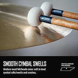 TENNESSEE SMALL BUSINESS: we're a small team specializing in high quality percussion instruments and mallets using the best materials possible; our wood shop is in Nashville, Tennessee, and your choice supports American jobs WHY IT MATTERS: we don't just simply "source" products from overseas factories and put our logo on it; controlling design and production in-house lets us focus on first-class construction to make professional, highly intentional, long-lasting instruments GENERAL USE MALLETS: these medium hardness mallets are for general purpose use from timpani to cymbal swells to drum set; great for covering multiple instruments or to have in your drumstick bag when the moment calls for mallets HEAD MATERIAL: long-lasting felt with medium hardness; the density creates a resonant attack on timpani while drawing out overtones, makes for smooth cymbal swells, and has a soft but powerful sound on toms HANDLE MATERIAL: made from solid birch with thickness, length, and weight dialed-in for outstanding balance and feel; these durable handles have a smooth finish, rounded tips, and an elegant stained finish RECOMMENDED FOR: timpanists, orchestral percussionists, drum set players (especially jazz applications), high school band members, students SPECS: total length 15.25", head size 1.5" W x 1" H, handle diameter 0.5", each mallet weighs about 1.6 oz; sold in pairs THE TAKEAWAY: buying these mallets supports an American company and Tennessee workers, and they’re a solid choice for all-around use from timpani to cymbal swells to drum set toms; for all ages and skill levels