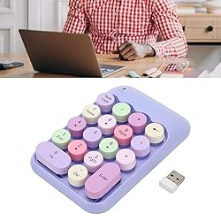 Generic 2.4Ghz Numeric Keypad, 18 Keys Mini Number Keypad with USB Receiver, Vintage Color Keyboard Round Keycaps, Financial Accounting Numpad for Desktop Laptop (Violet Theme), Genericuzo18a07bm-12