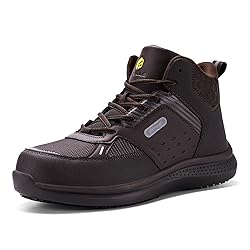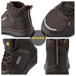 【Anti-Smashing】- The wide and extra wide composite toe provides ultra protection against impact and compression hazards to keep you working safely. It’s been tested that the Steel Core can withstand up to 2500 pounds of vertical pressure and 75 pounds of vertical instant shock. Allowing you to work risk free and bring out your best at work. 【Water/Oil Resistant】- Professional Anti-Slip Criss-cross Rubber outsole minimizes the risk of unexpected slips and falls. The criss-cross rubber offers a solid grip on low traction surfaces and remains stable against oil and water. Perfect for warehouse and kitchen jobs. 【Ankle Safety & Support】- The shock-absorbing high-top design protects your ankle with a high rebound foam, absorbing all external impact from damaging your feet. The high-top composite core provides additional stability and protects your ankle from harm. 【Lightweight Advanced Material】- These heavy-duty steel toe work boots are made of coarse-grained microfiber material and carbon fiber microfiber mesh which is resistant to friction, scratches, folding, and basic waterproofing. Efficiently improved durability while avoiding boots that are too heavy. Also, the upper also utilize 3M reflective material to improve the safety of walking and working at night. 【Wide Toe Box】- Roomy toe box offers ample space for toes to spread freely & naturally. FitVille work shoes comes in both wide and extra wide solid composite toe box not only allows your toes to move freely, but it also leaves a safe distance between your toes and the shock-absorption toe cap.