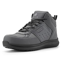 【Anti-Smashing】- The wide and extra wide composite toe provides ultra protection against impact and compression hazards to keep you working safely. It’s been tested that the Steel Core can withstand up to 2500 pounds of vertical pressure and 75 pounds of vertical instant shock. Allowing you to work risk free and bring out your best at work. 【Water/Oil Resistant】- Professional Anti-Slip Criss-cross Rubber outsole minimizes the risk of unexpected slips and falls. The criss-cross rubber offers a solid grip on low traction surfaces and remains stable against oil and water. Perfect for warehouse and kitchen jobs. 【Ankle Safety & Support】- The shock-absorbing high-top design protects your ankle with a high rebound foam, absorbing all external impact from damaging your feet. The high-top composite core provides additional stability and protects your ankle from harm. 【Lightweight Advanced Material】- These heavy-duty steel toe work boots are made of coarse-grained microfiber material and carbon fiber microfiber mesh which is resistant to friction, scratches, folding, and basic waterproofing. Efficiently improved durability while avoiding boots that are too heavy. Also, the upper also utilize 3M reflective material to improve the safety of walking and working at night. 【Wide Toe Box】- Roomy toe box offers ample space for toes to spread freely & naturally. FitVille work shoes comes in both wide and extra wide solid composite toe box not only allows your toes to move freely, but it also leaves a safe distance between your toes and the shock-absorption toe cap.