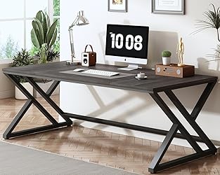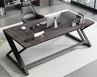 - Spacious Desktop & Leg Room This office desk provides plenty of space for multiple monitors, keyboards, cups, books, and more, ensuring you can stay organized and efficient whether working, studying, or relaxing. Simplicity and Aesthetics Our 70-inch long computer desk measuring 70 inches long and combines wood and metal frames, offering a sleek design adds a touch of classic style to your workspace or office for a modern and stylish ambiance. Sturdy and Durable Our large executive desk is constructed with premium wood and sturdy metal frames, guaranteeing long-term stability and durability while maintaining its elegant look over time. Versatile Use This industrial computer table is not limited to computer work; it can also serve as a creative workstation, writing desk, conference table, or gaming area, providing you with versatile flexibility to meet various needs. Convenient Assembly and Quality Assurance We provide simple and clear installation instructions, making it easy for you to assemble the simple pc laptop work desk. Furthermore, our outstanding after-sales team is always available to answer your questions and provide excellent service, ensuring a worry-free shopping experience. SPECIFICATION Computer Desk Dimensions: 70.9 " W x 31.5 " D x 29.5 " H Inch Material: MDF, Metal Tube and Wood Grain Finish: Black Powder-coated Paint and Dark Gray Oak Usage: Minor Assembly Required, Tools and Instructions Included Package: 1* Computer Table, Hardware and Assembly Instruction