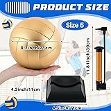 Gold Charming Style: show off your classy taste and style with our gold colored balls, the color doesn't just lend a festive touch, but also helps in easily spotting the ball during play; Be it for a sports ball match, a fun game at the park, or even a memorabilia room, these balls bring glitz and charm to your settings Complete Volleyballs Set: the package includes not just 4 pcs golden size 5 volleyballs but also 1 pcs reliable pump and needle to keep your balls properly inflated, and 4 pcs ball holders; This makes it a complete set for all your recreational or competitive play needs; It is recommended to use an oil based signature pen when signing, and do not touch the signature until the writing is completely dry Size for Sporting Fun: with an approximate diameter of 8.2 inches/ 21 cm, our volleyball ball is crafted to meet your both play and collection needs; The size is ideal for playability and handling, enabling you to maintain the good throw, kick, and control during the game DIY and Autograph Style: the gold volleyball features autograph style, making them ideal for shoe, function, or celebrity memorabilia; With their smooth surfaces, you can also engage in DIY designs to personalize your ball, making it truly one of a kind Sturdy Material: made from PVC, our gold volleyball offers durability and resistance to wear and tear, quite resilient, easy to autograph and DIY, and whether you hit the ball in the field or just have fun at home, you can trust these balls to withstand endless rounds of play