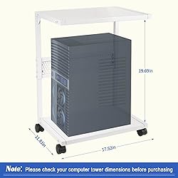 Sturdy Iron Material: The PC stand is made of thickened iron material, with a stable structure that is not easily deformed, and can easily support your computer tower moving on the ground. Suitable for Most Computer Towers: Computer tower stand length: 17.52 inches, width: 11.81 inches, internal height: 19.69 inches, can support most computer towers on the market. Note: Please specify the main dimensions before purchasing. Mobile PC Tower Stand: Four 360°rotating universal wheels are easy to move, and braked casters can keep it stationary when needed. The CPU stand lifts the PC chassis off the ground, which helps speed up the cooling speed of the PC chassis. Multifunctional Tower Stand: An efficient and practical two-layer design meets most storage needs, with a computer tower placed on the bottom and books, magazines, plants, etc. stored on the top. The pin board design on the back can be used to organize power boards or other items. Easy to Install: We provide the necessary parts for installation and step-by-step assembly instructions, as well as video instructions, so you can assemble this PC stand in a few minutes.