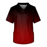 Men's Fit Gradient Color Scrub Tops Plus Size V-Neck Short Sleeve Funny Medical Workwear with 3 Pocket S-5XL