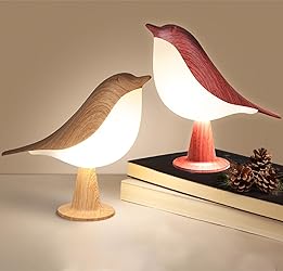 【Touch Control & 3-Way Dimmable】This small bird lamp is touch activated and super simple to operate. Just simply tap the control sensor on the top of the bird lamp, you can switch power on/off and light colors (warm light/natrual light/cold light). LONG PRESS the touch sensor to adjust brightness (high to low, low to high), making your eyes more cormfortable. 【Hangable & Detachable】There is a metal ring on the top of the bird lamp and the base of the lamp is detachable. The bird night lamp is very handy carrying to take with you anywhere, for bedroom, living room, kitchen, bathroom, dating, children's tent and more. 【Cordless & USB Rechargeable】The cordless bedside table lamp is battery powerd. Built in 2600mAh battery, it can last 4-12 hours (up to the brightness and mode). The bird lamp comes with a USB C cable, you can charge the light for long use. 【Adorable & Creative Design】This night light features the shape of a bird, and it uses a wood grain-like color paint. Made of ABS plastic, with detachable structure and hangable ring, the small bird night light is lightweight and portable. The bird lamp can also function as an aroma diffuser, you can put 2-3 drops of essential oil each time into the small round hole at the top of the lamp (Don't drop too much essential oil at once to avoid damaging the bird light). 【Perfect Gift for Everyone】The bird table lamp is beautiful, adorable and elegant that will be a great gift for kids, friends, lovers and business partners. It can function as a night light, bedside lamp, nightstands lamp, reading lamp, table lamp, desk lamp, baby nursery light and more. It can also be placed in the bedroom, living room, bookshelves or office as art decoration!