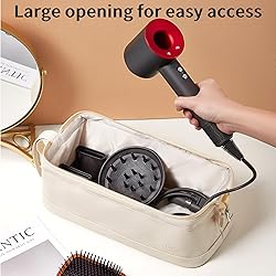 Perfect Fit: The Linpr hair dryer carrying case offers strong compatibility and a wide range of applications. It is perfectly suitable for the Supersonic hair dryer, Airwrap styler, Corrale hair straightener, and Shark Flexstyle Air styling & drying system, along with their accessories. Size: 14.2 x 6.3 x 5.5 inches Quality Material: The Linpr hair dryer bag is made of high-grade PU leather, offering a soft and comfortable feel. Its waterproof surface ensures protection against rain on wet days. The smooth and delicate interior fabric effectively reduces friction between items, providing better protection for your hair dryer and preventing damage Easy Access: Ordinary storage bags are made of single-layer fabric, which is soft and shapeless. This makes it inconvenient for users to retrieve items and may even cause damage. The Linpr Shark Flexstyle case features three-layer thickened fabric, a large opening design, and hidden metal brackets at the opening and bottom for support. This not only makes the storage bag more structured and stylish but also ensures easy access to your items Easy to Carry: The Linpr Dyson Airwrap case features a wider and thicker carrying handle, designed to prevent user fatigue even during extended use. Its lightweight and portable design makes it perfect for travel. Additionally, it can be hung on the wall at home for easy access to your hair dryer Multi-functional: The Linpr travel case can even meet your makeup needs. Not only can it store a hair dryer and curling iron, but it also has ample space for cosmetics. This versatile organizer is the perfect solution for all your on-the-go needs