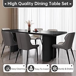 Elegant Sleek Black Table Top:The table features a sophisticated black top, adding a luxurious touch to any dining area.Easy to clean and maintain, the marble print ensures a practical and stylish surface for everyday use. Compact and Space-Saving: perfect fit for small to medium dining areas, providing ample seating without taking up too much space. Ideal for kitchens and breakfast nooks, maximizing your available space The ample surface area provides plenty of room for dining essentials and more. Comfortable Dining Chairs: matching our ergonomically designed dining chairs with cushioned seats for ultimate comfort during meals. Sturdy construction ensures the chairs are durable and supportive. Stable and Sleek Wave Support Legs: The dining table is supported by sleek wave legs, adding a modern and stylish element to your dining space. Wide enough footprint to evenly distribute weight and prevent tipping provide excellent stability and a unique visual appeal. Simple Assembly: This Dining Table Sets comes with detailed assembly instructions and all necessary hardware for a quick and easy setup. Designed for convenience, allowing you to enjoy your new dining set in no time.