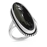 - This exquisite black onyx and sterling silver ring is a bold and trendy accessory for any woman's jewelry collection. The oval gemstone is beautifully set against the shimmering sterling silver band, creating a striking contrast. This ring is perfect for both casual and formal occasions, adding a touch of elegance to any outfit. The intricate design and high-quality craftsmanship make it a standout piece. Whether as a gift or as a treat for yourself, this fine sterling silver ring is sure to make a statement. Elevate your style with this stunning black onyx ring!