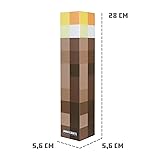 ILLUMINATE YOUR WORLD: Iconic Minecraft LED torch design helps to prevent monsters and hostile mobs from appearing with this figural nightlight, bringing your favorite video game's pixelated universe to life. USB RECHARGEABLE BATTERY LAMP: This torch comes with a rechargeable lithium-ion battery for long-lasting use. The included USB-C cable ensures easy and convenient charging. AUTHENTIC GAME-INSPIRED DESIGN: This meticulously crafted 11-inch torchlight replicates the authentic design of the Brownstone Pixels Torch from the game. A perfect home accessory for gaming enthusiasts. DURABLE HIGH-QUALITY PLASTIC: Made of high-quality plastic, Minecraft LED torch is strong and long-lasting, suitable for various room styles. 4 LIGHT OPTIONS. ESSENTIAL FOR MINECRAFT ROOMS: Adds immersive adventure lighting effects to children's rooms, living rooms, or gaming areas. Mount it for everyday lighting or just as a toy.