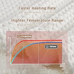 - STARBEDIA Waffle Heated Throw Blanket, Machine Washable Electric Blankets Fast Heating with LCD Controller, 6 Heat Levels & 1-4H Time Settings, ETL Certified Heat Throw for Couch, White, 50" x 60"